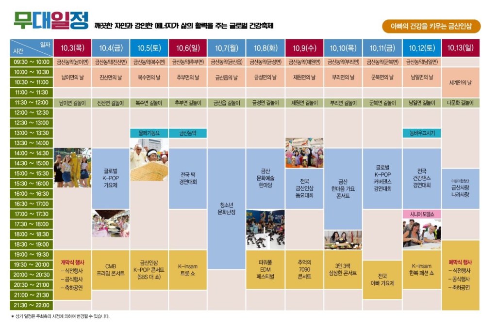 這個是官方的韓國錦山人參節網站與節目表: