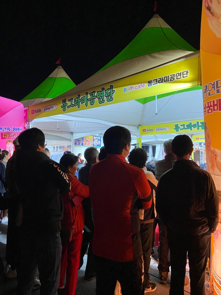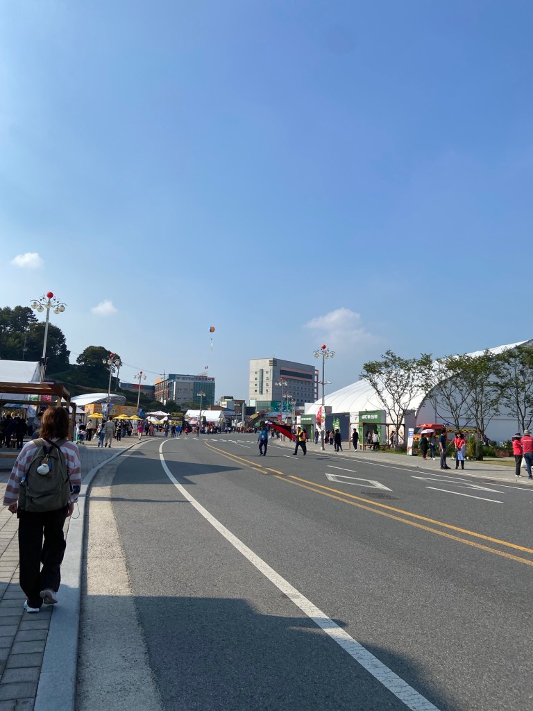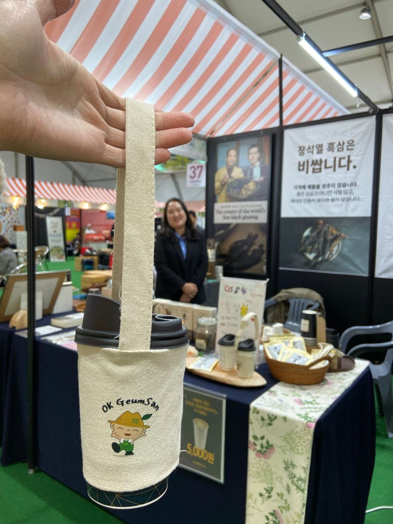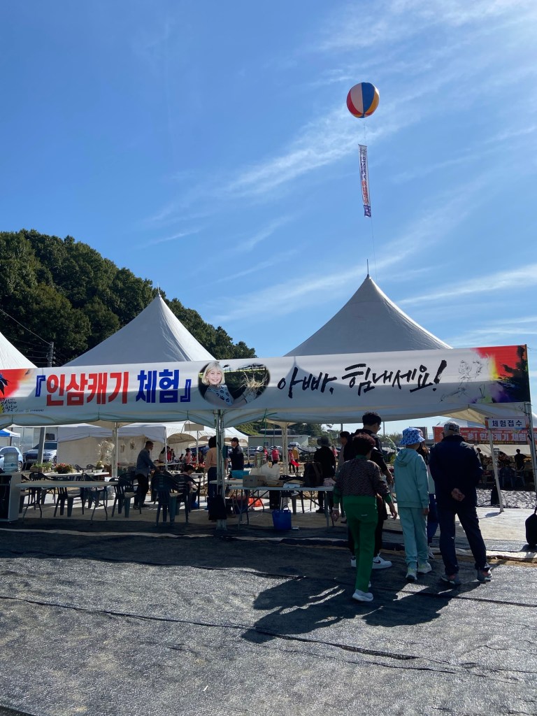 因為選擇乘搭快速車的關係,兩個半小時就到達錦山車站,轉搭的士五分鐘後來到人參節會場。甫落的士當刻,連空氣都充滿了人參氣味,配合韓國阿珠媽最喜歡的舞蹈音樂,祭典氣氛非常高漲!未入會場周圍已有大量人參相關店鋪或攤位,令人目不暇給😀