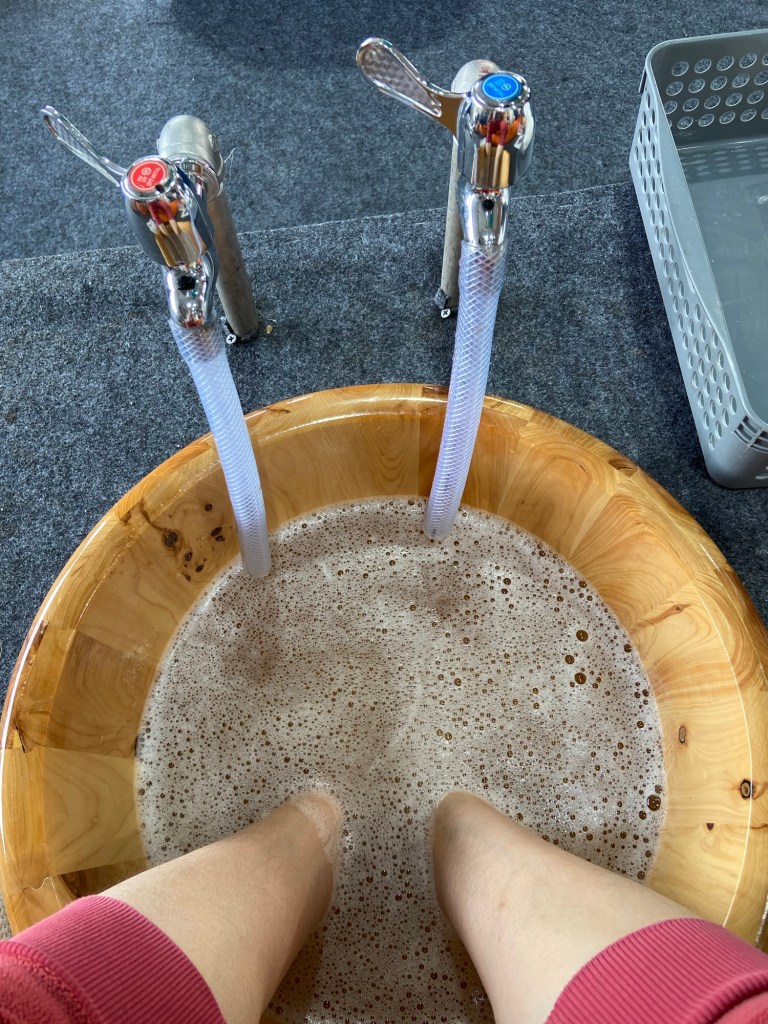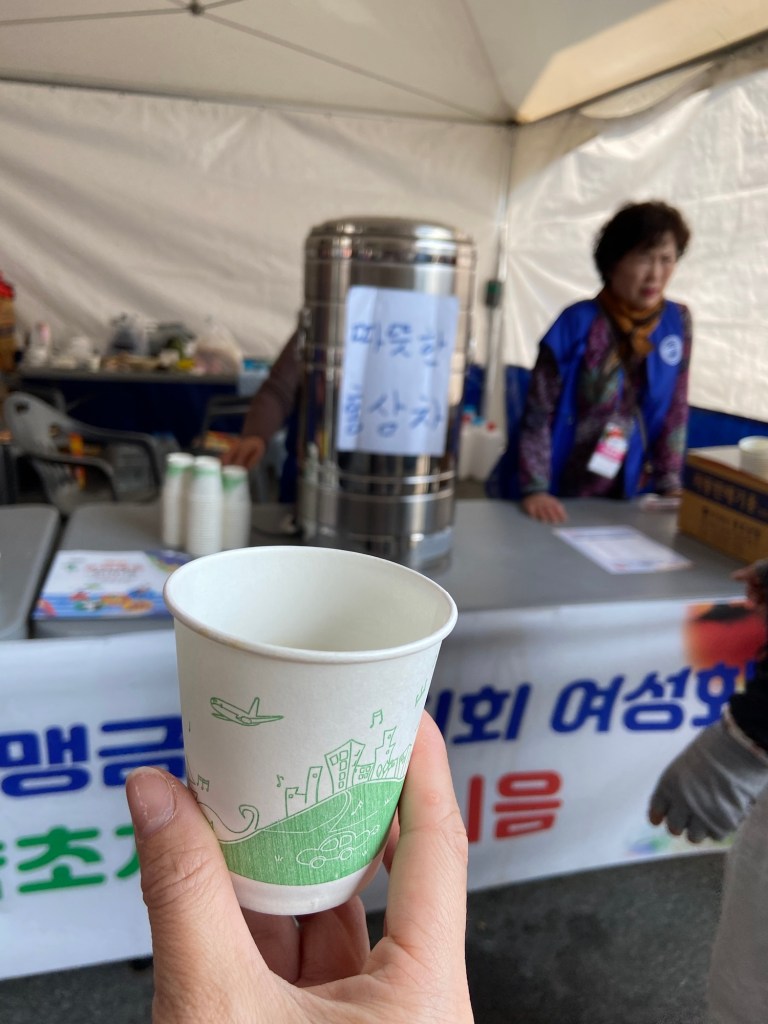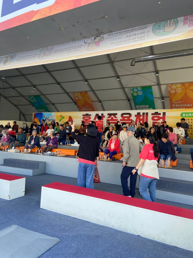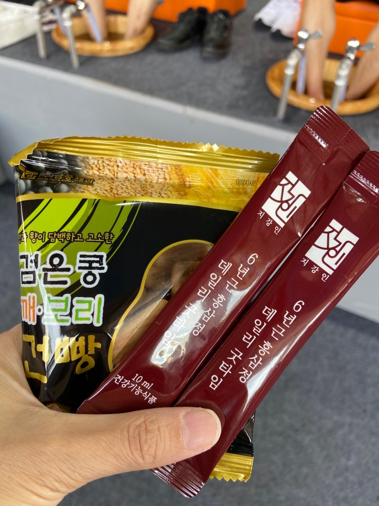 挖完人參,完成是次行程最重要 (!) 的任務後,就乘車回到人參節會場,繼續參加體驗。我們先去買杯人參 latte, 準備排隊嘗試人參足浴。