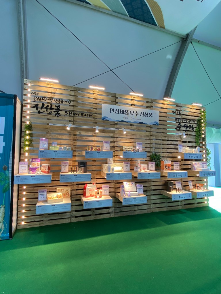 會場分為多個區域,到處都是試飲試食,有傳統韓醫體驗館,有韓國傳統文化體驗攤位,有餐飲區域,有表演節目區域,有鮮人參銷售區域,亦有人參合作社以及保健品公司在會場參展等等。不過最重要的當然是,即時衝去報名明天的掘人參活動!報完名後就可以到處慢慢參觀,最後還可以跟粉紅波波草合照🥰
